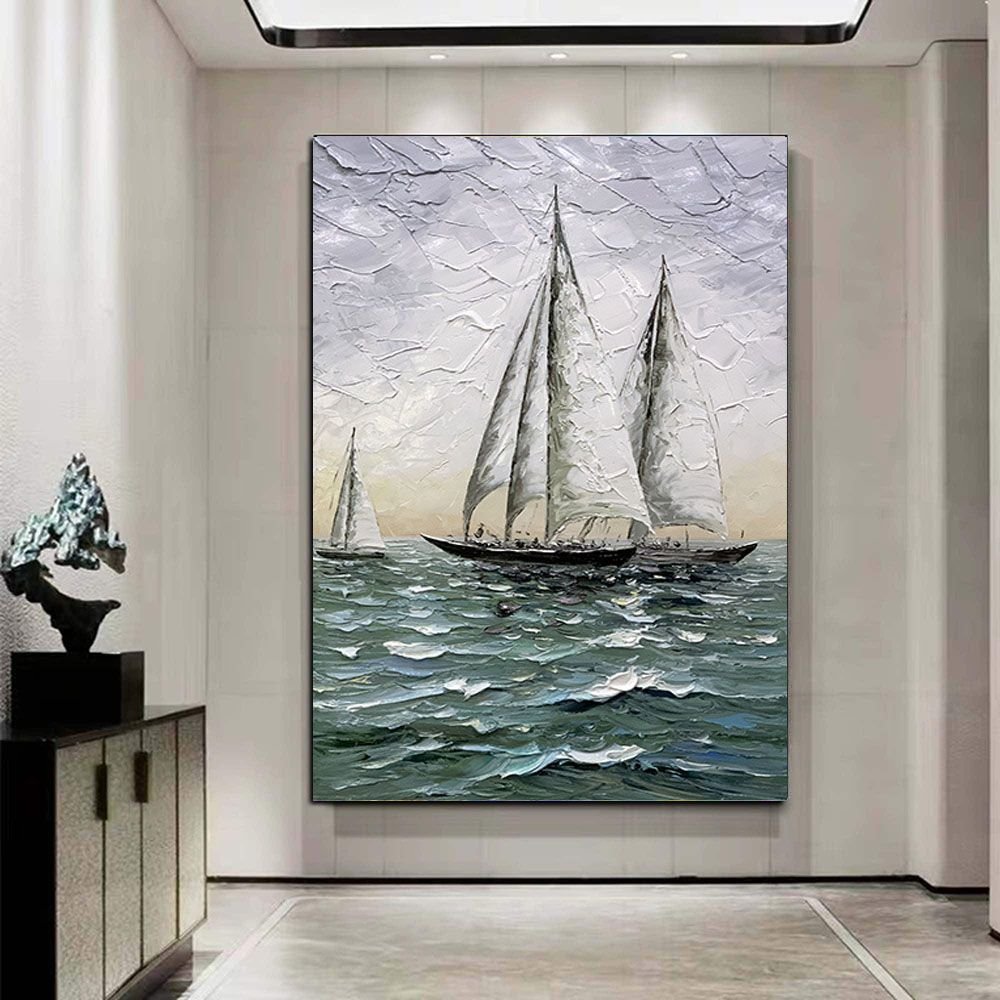 Home > Hand Painted Impressionism Sunrise Seascape Abstract Oil Painting Canvas Art Poster Picture Wall House Decoration Mural