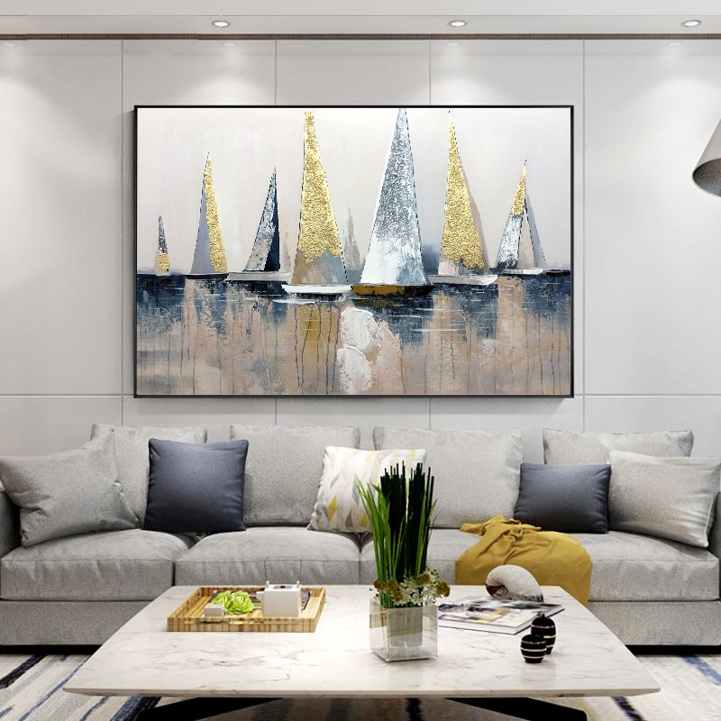 Home > 100% Hand Painted Abstract Modern Boat Pictures Art Oil Painting On Canvas Wall Art Wall Painting For Living Room Home Decoration