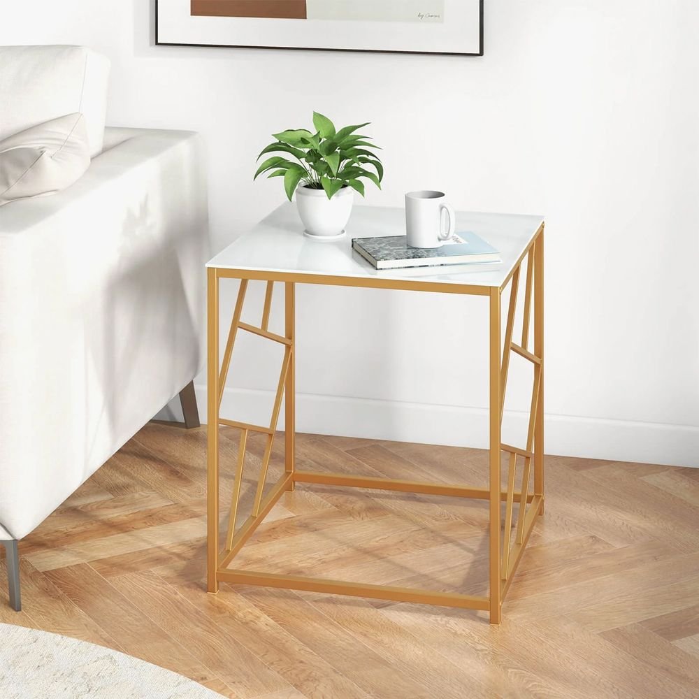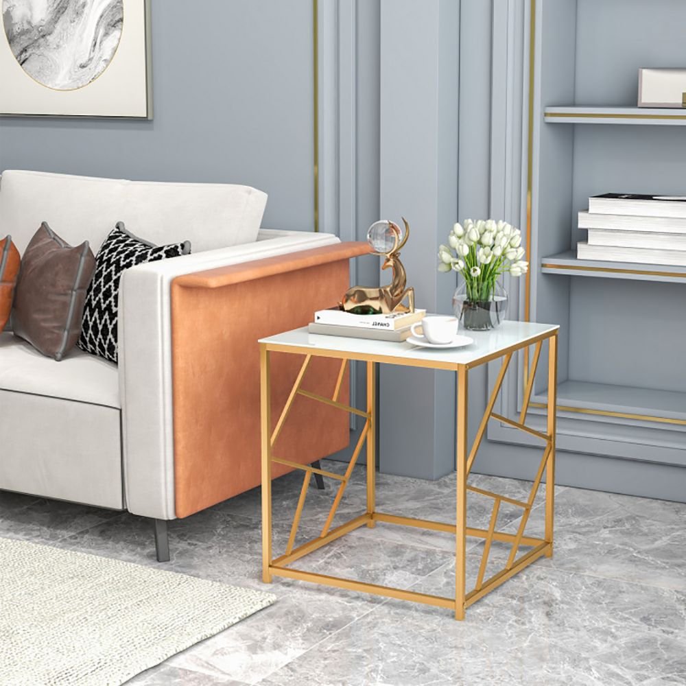 2.Elegant Geometric Golden Frame: The geometric golden metal frame of the accent table adds a contemporary flair to any living space. Its sleek and elegant design makes it a perfect addition to your home decoration.