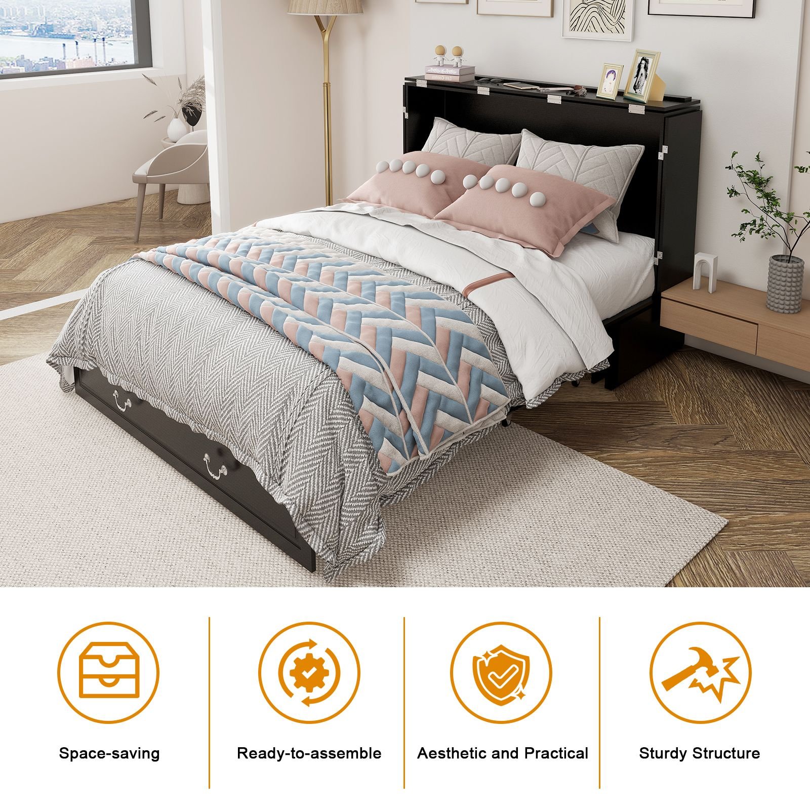 2 Three-Prong Outlets and 2 USB Ports: This Queen Murphy bed with drawers includes 2 three-prong outlets and 2 USB ports for extra convenience.This feature enhances the functionality of the murphy cabinet bed and boosts your daily comfort. Suitable for both weekdays and weekends, the full size Murphy bed with storage caters to a variety of needs.