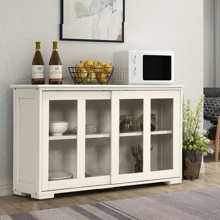 This kitchen storage cabinet with sliding doors is perfect to fit your kitchen or dining room and provides you with unmatched convenience.