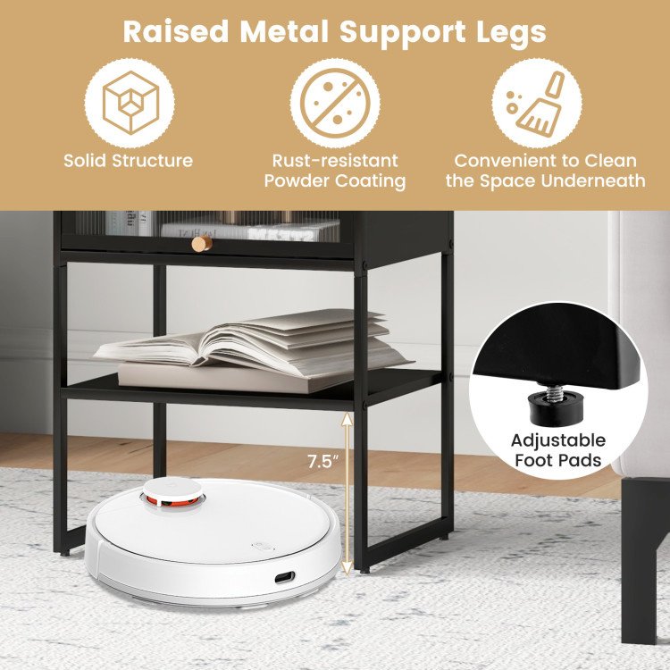 1.Upgraded Flip-up Door: The nightstand features a visible upward-opening door that can help you quickly find what you need and prevent dust. The flip-up design allows for more storage convenience without occupying horizontal space.
