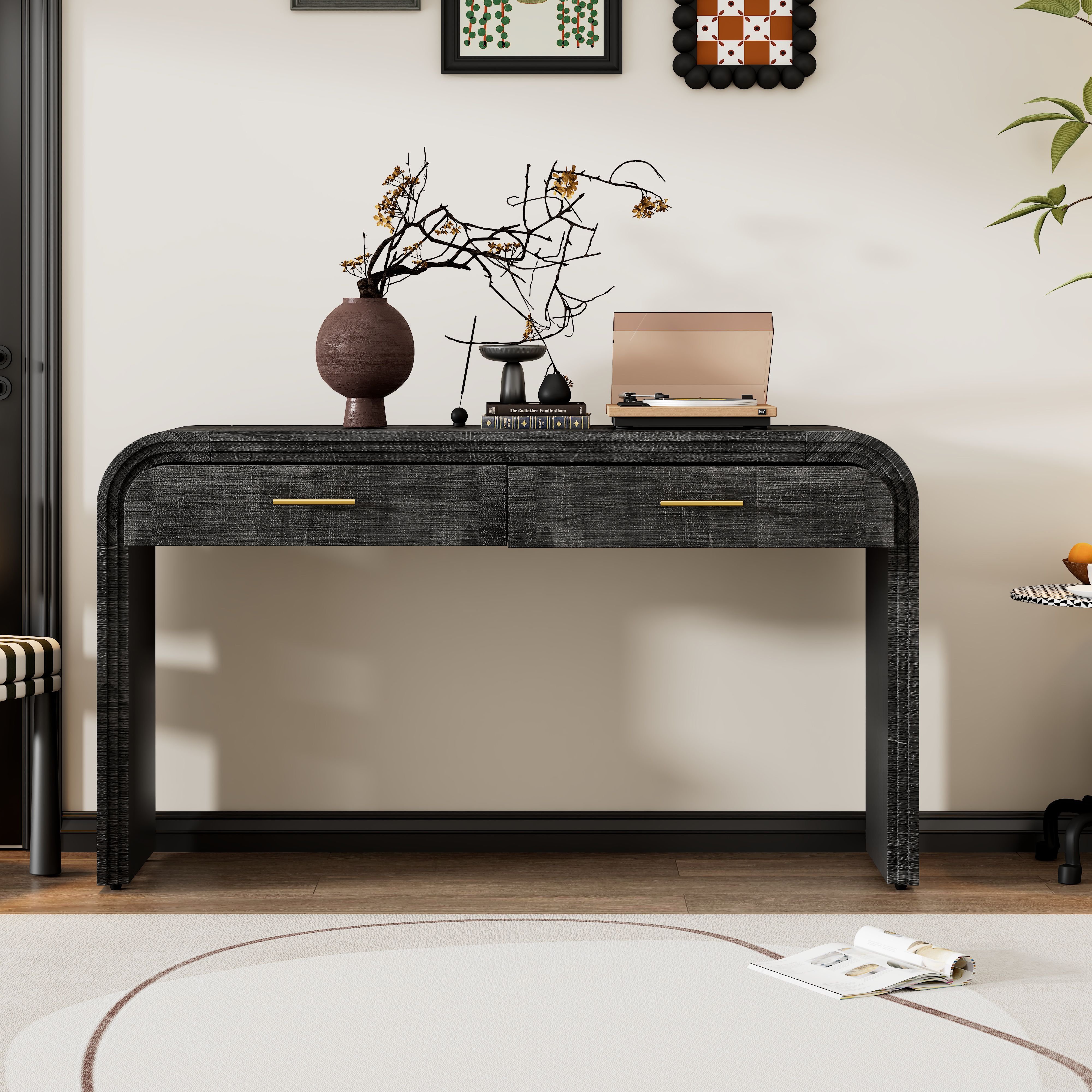Unique Retro Silhouette Console Table with Open Style,Two Top Drawers for Entrance,Dinning Room,Living Room Unique Retro Silhouette Console Table with Open Style,Two Top Drawers for Entrance,Dinning Room,Living Room Unique Retro Silhouette Console Table with Open Style,Two Top Drawers for Entrance,Dinning Room,Living Room
