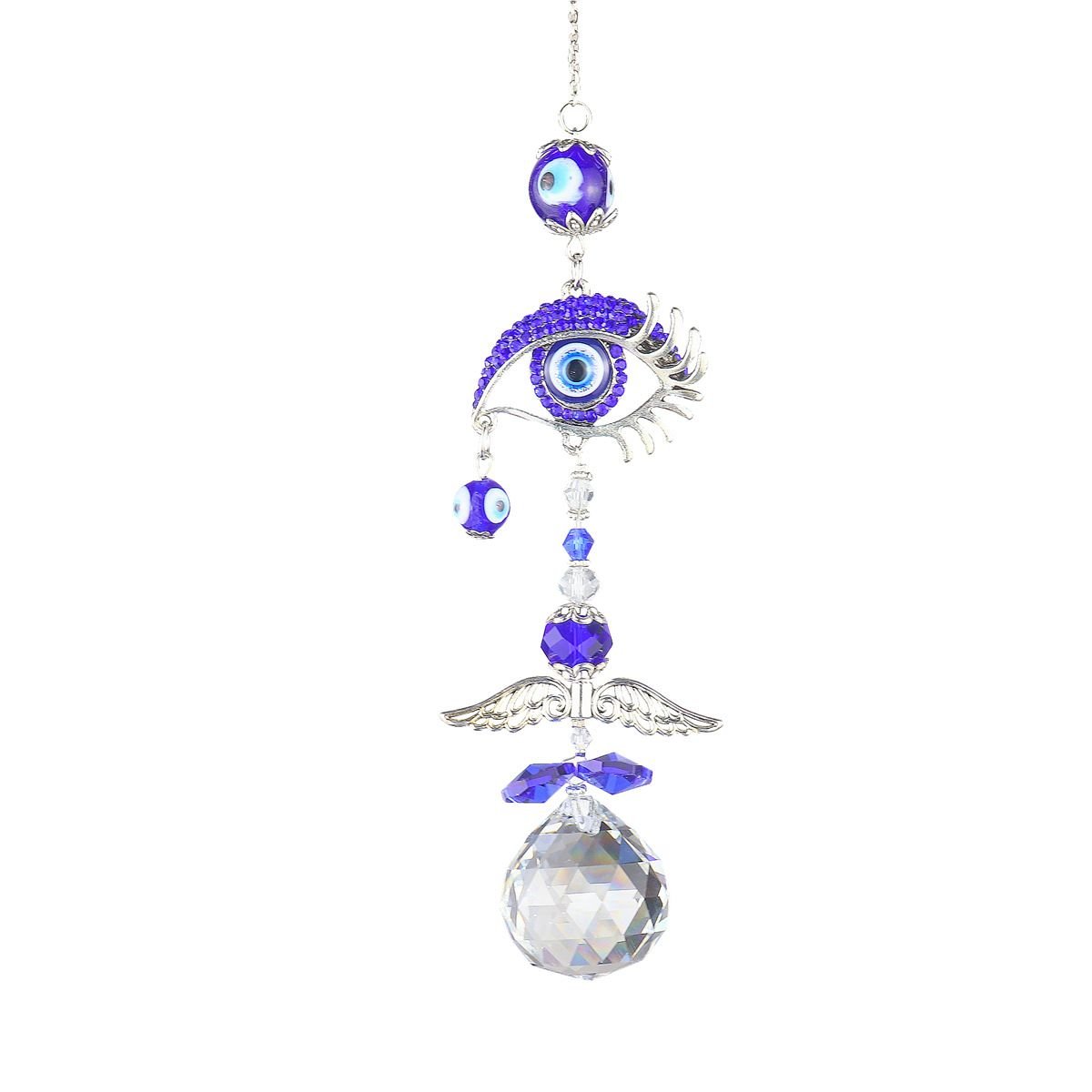 1pc Crystal Sun Catchers; Blue Butterfly Evil Eye Suncatcher Indoor Window With Prism Ball; Sunlight Rainbow Maker Good Luck Hanging Crystals Ornament