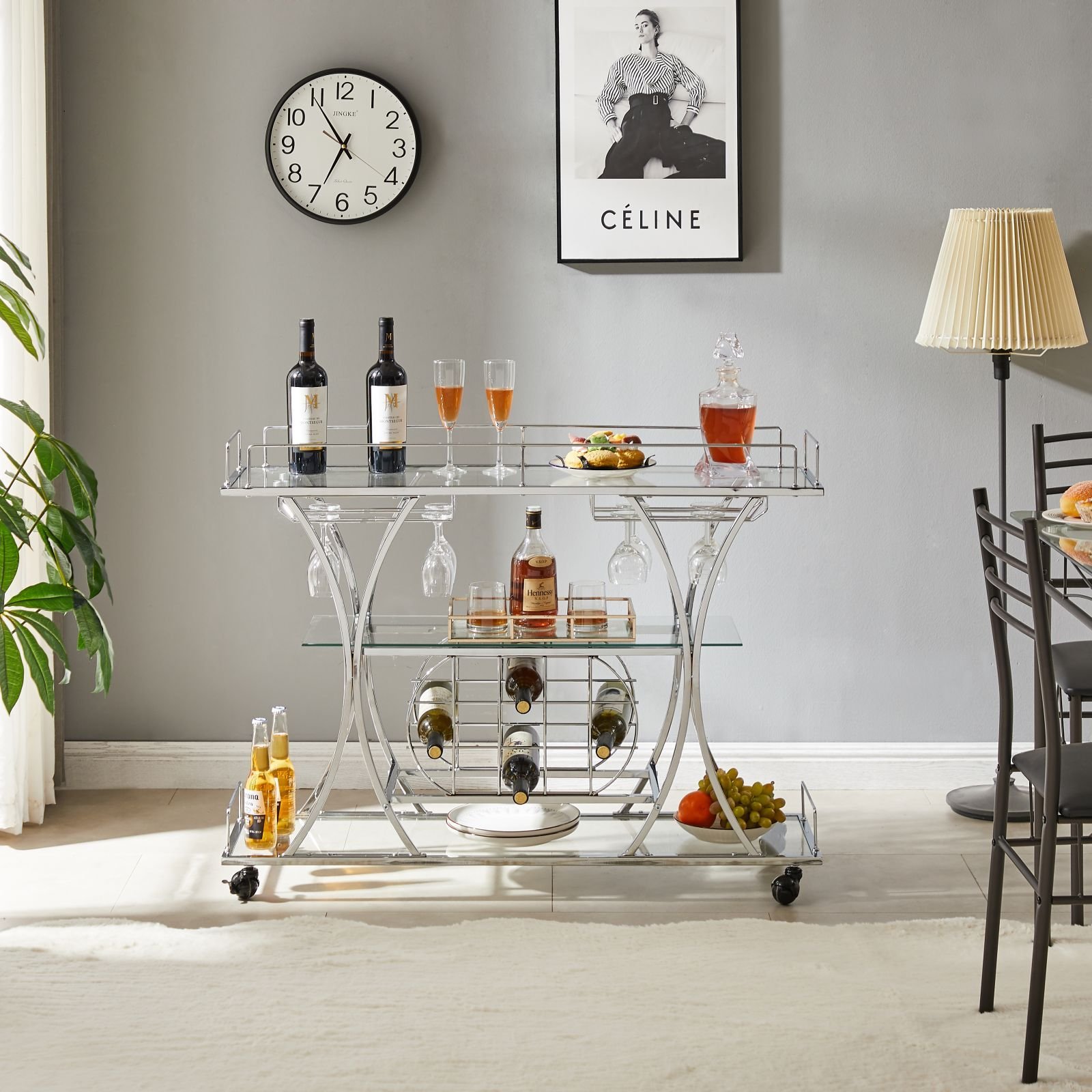 3.Modern design, The combination of the metal frame and glass creates a unique contemporary look that makes this bar cart the perfect complement to a variety of home decor styles to reflect your sophisticated aesthetic.