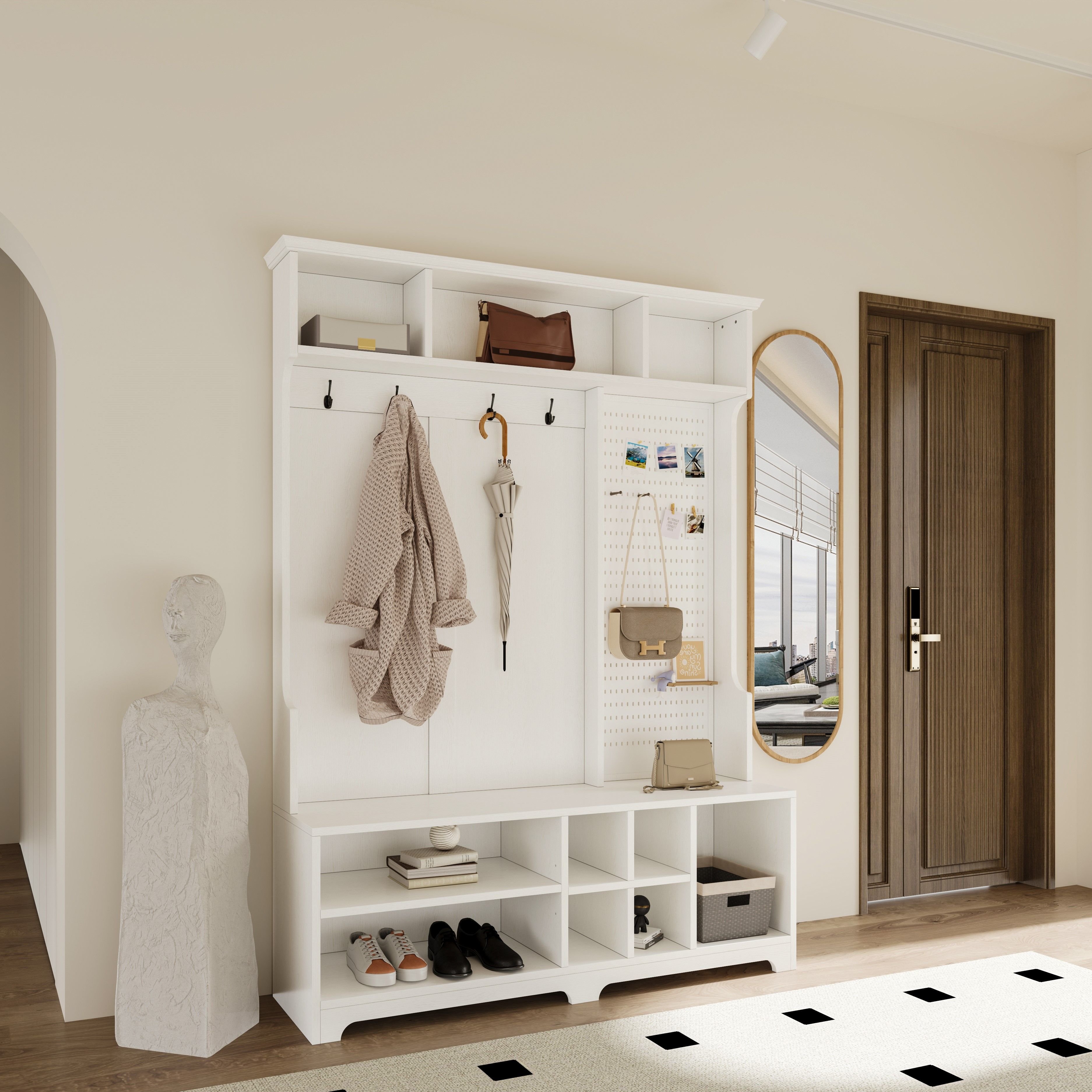 Hall Tree with Shoe Bench, Coat Rack ,Shoe Storage ,Storage Shelves and Pegboard, for Hallways, Halls and Bedrooms Hall Tree with Shoe Bench, Coat Rack ,Shoe Storage ,Storage Shelves and Pegboard, for Hallways, Halls and Bedrooms Hall Tree with Shoe Bench, Coat Rack ,Shoe Storage ,Storage Shelves and Pegboard, for Hallways, Halls and Bedrooms