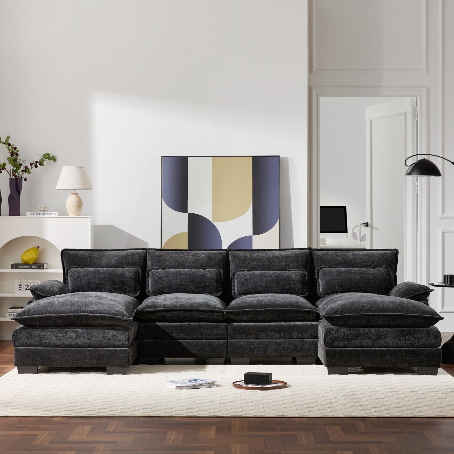 Comfortable design: The sofa is made of high-quality chenille, which is soft, comfortable and durable.Armrest pillows on both sides of the sofa can relax your head, and there are also 4 lumbar pillows to give better lumbar support, making it easy to adjust your posture and reduce discomfort and fatigue.