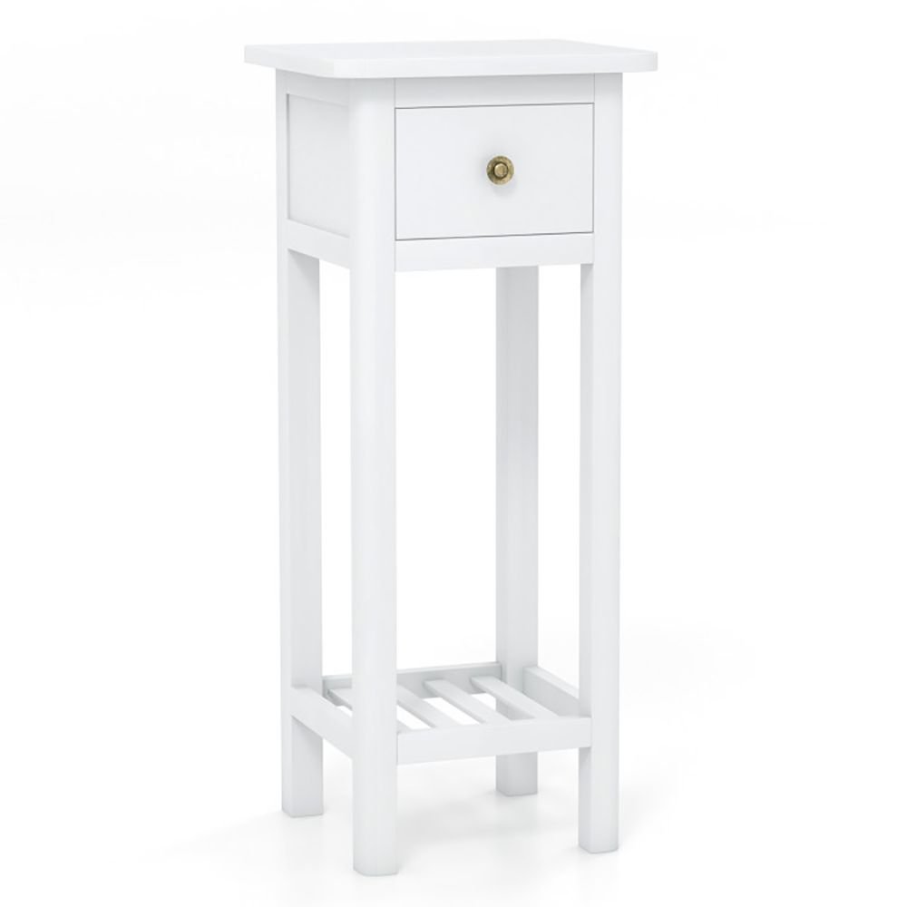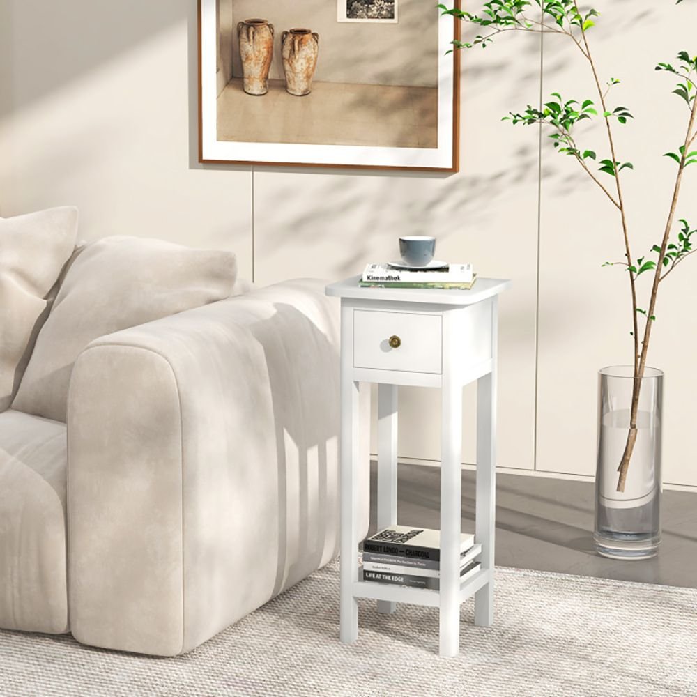 3.Extra Storage Space: Say goodbye to storage concerns! The spacious tabletop provides room for your cup of coffee or a lamp. The drawer not only adds a touch of elegance but also offers discreet storage for small items. Additionally, the open shelf is perfect for showcasing books or magazines, thus keeping everything you need within easy.