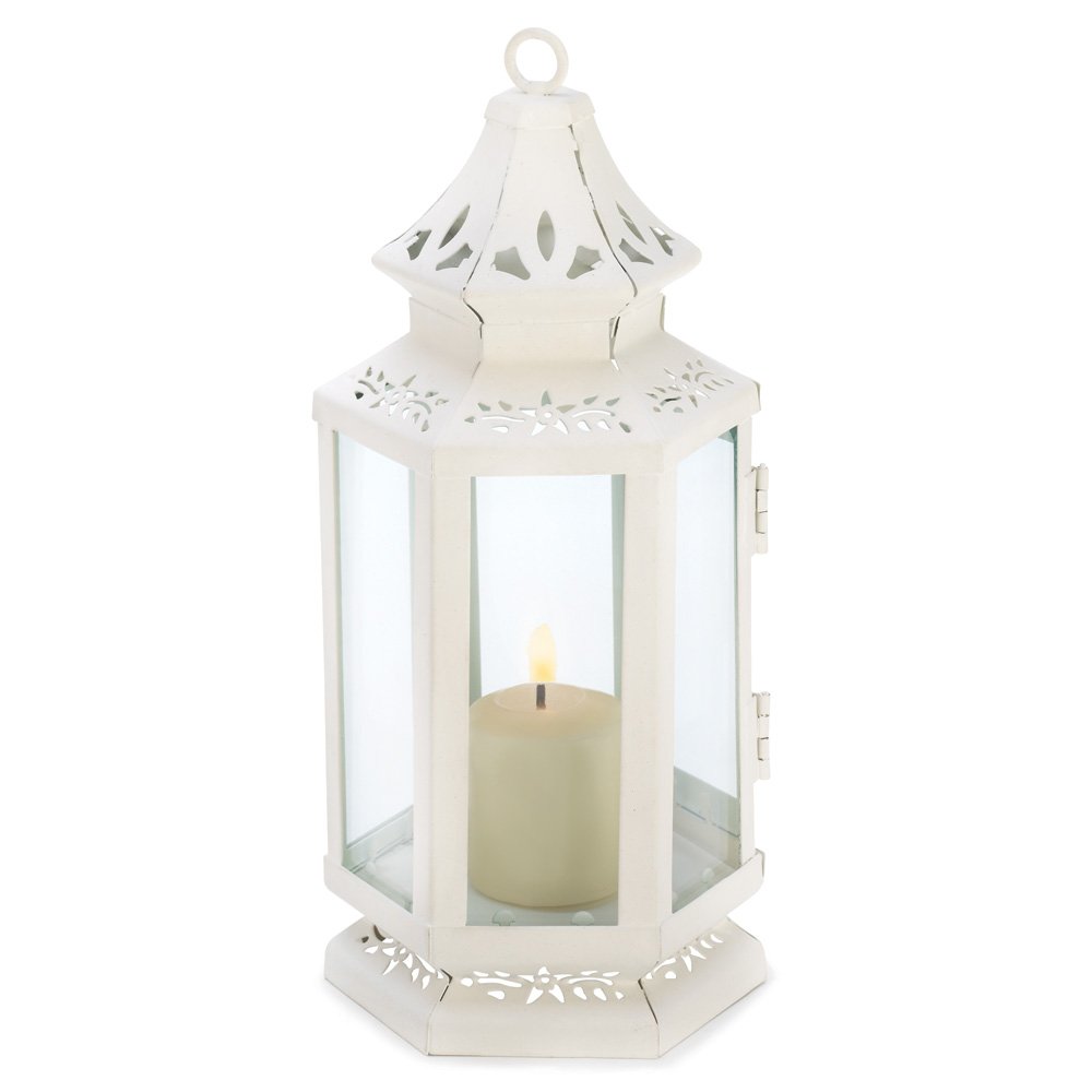 • Made from durable iron and glass with decorative cutouts to enhance the candle's flickering light