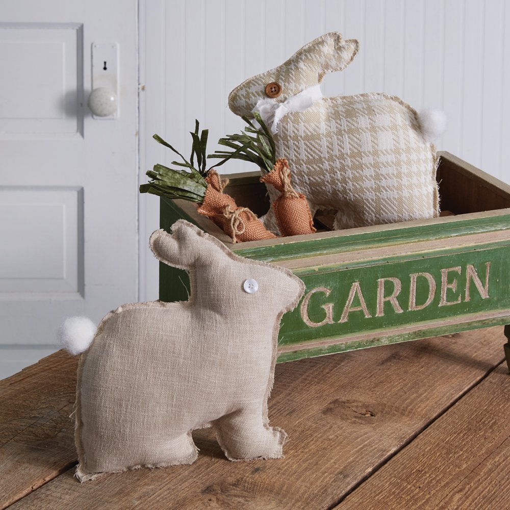 This plush rabbit is the cutest way to dress up a couch or basket during Easter. Bunnies are hand-sewn and filled with cotton with a button eye.