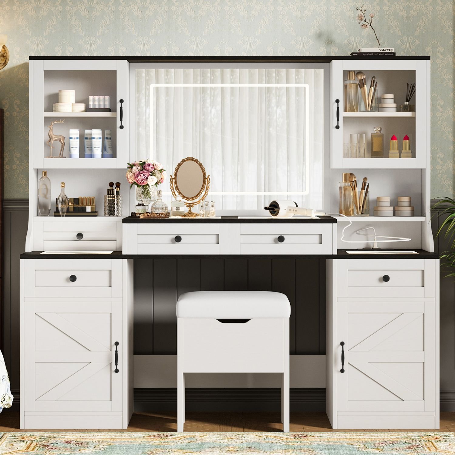 Farmhouse Chic Design: Crafted from MDF, this dressing table exudes a classic silhouette and sophisticated farmhouse style that exudes endless charm. Designed for practicality, this dressing table also features a lighted mirror, drawers and cabinets for all your makeup and storage needs.