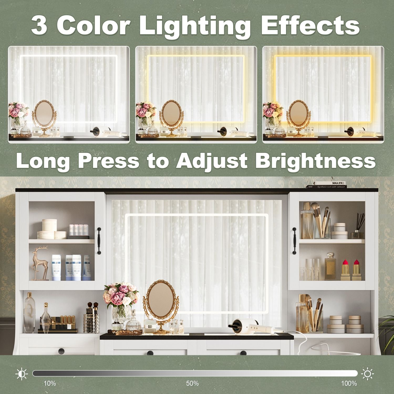 3 Color Lighting Modes: The dressing table is equipped with a touch button, which allows you to easily adjust the light with three different effects. It is perfect for daytime makeup, nighttime skin care and selfies.
