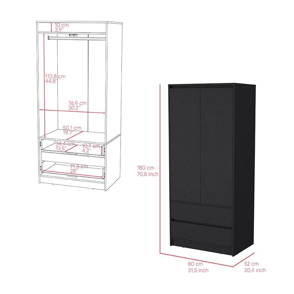 Includes two double drawers (28.1" W x 13.5" D) for storing smaller items such as clothes, undergarments, or accessories, drawers slide on metal glides for hassle-free use.