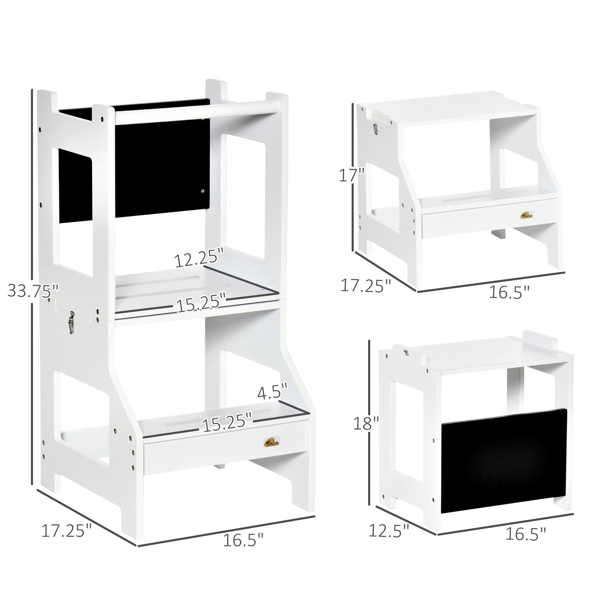 Home > Kids Kitchen Step Stool, 2 in 1 Kitchen Table Set Toddler Standing Tower with Chalkboard, Safety Rail for Kitchen, Bathroom, Bedroom, White