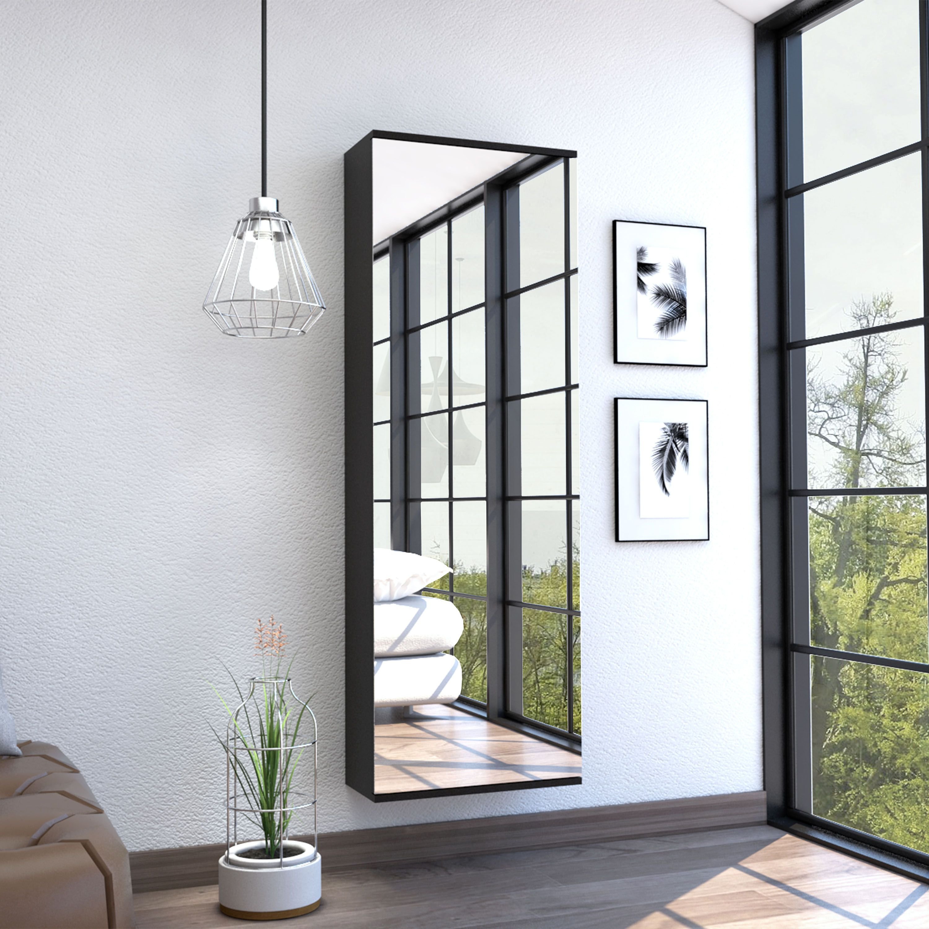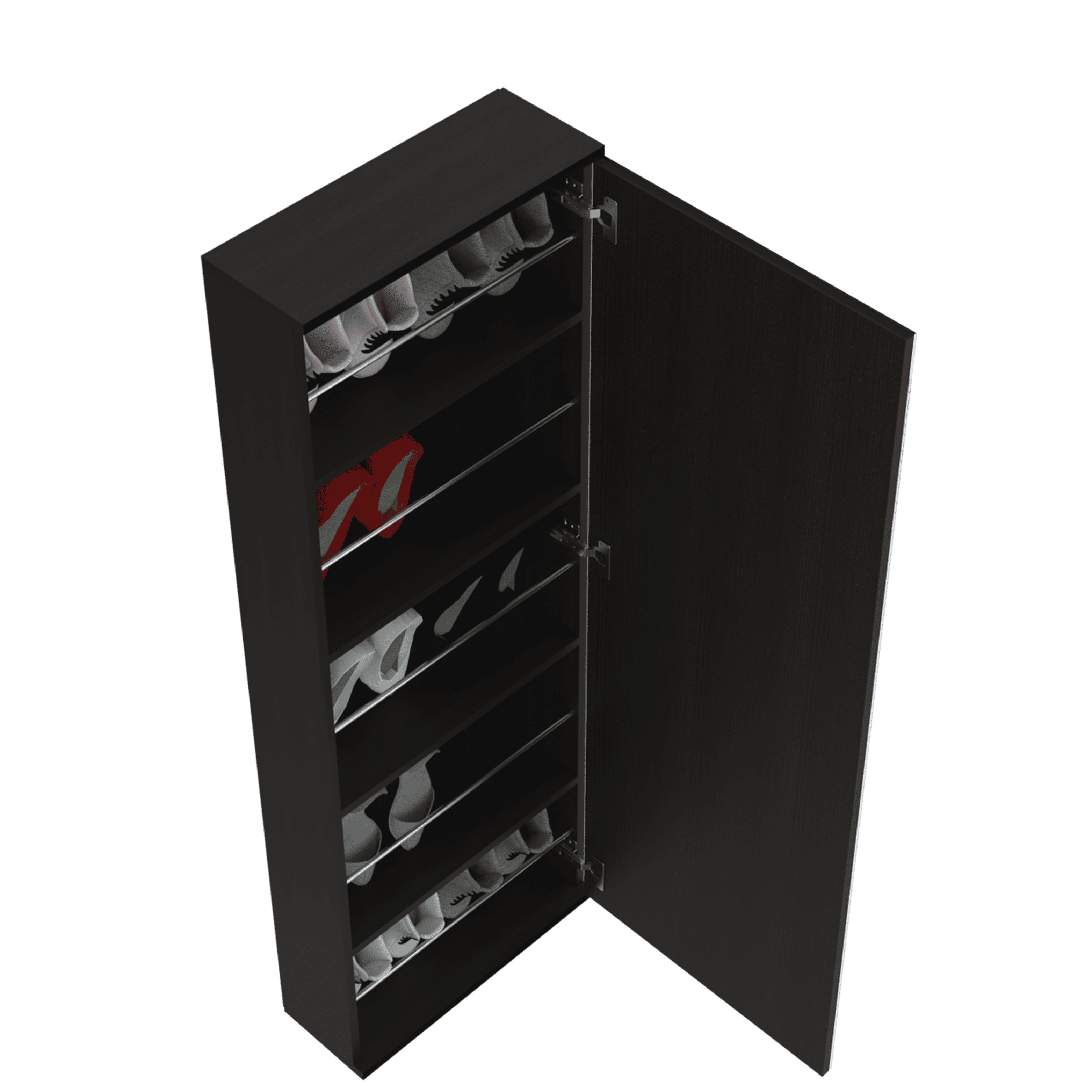 Leto Wall Mounted Shoe Rack With Mirror; Single Door; Capacity For Ten Shoes -Black Leto Wall Mounted Shoe Rack With Mirror; Single Door; Capacity For Ten Shoes -Black Leto Wall Mounted Shoe Rack With Mirror; Single Door; Capacity For Ten Shoes -Black
