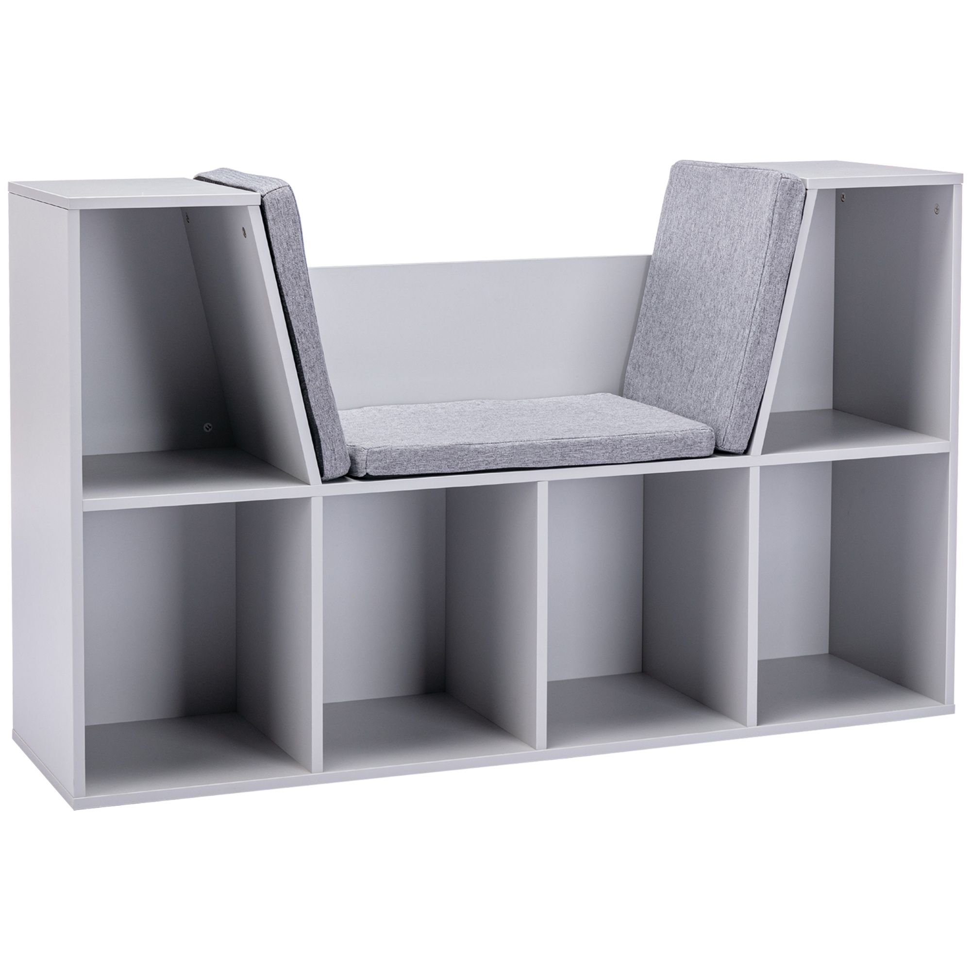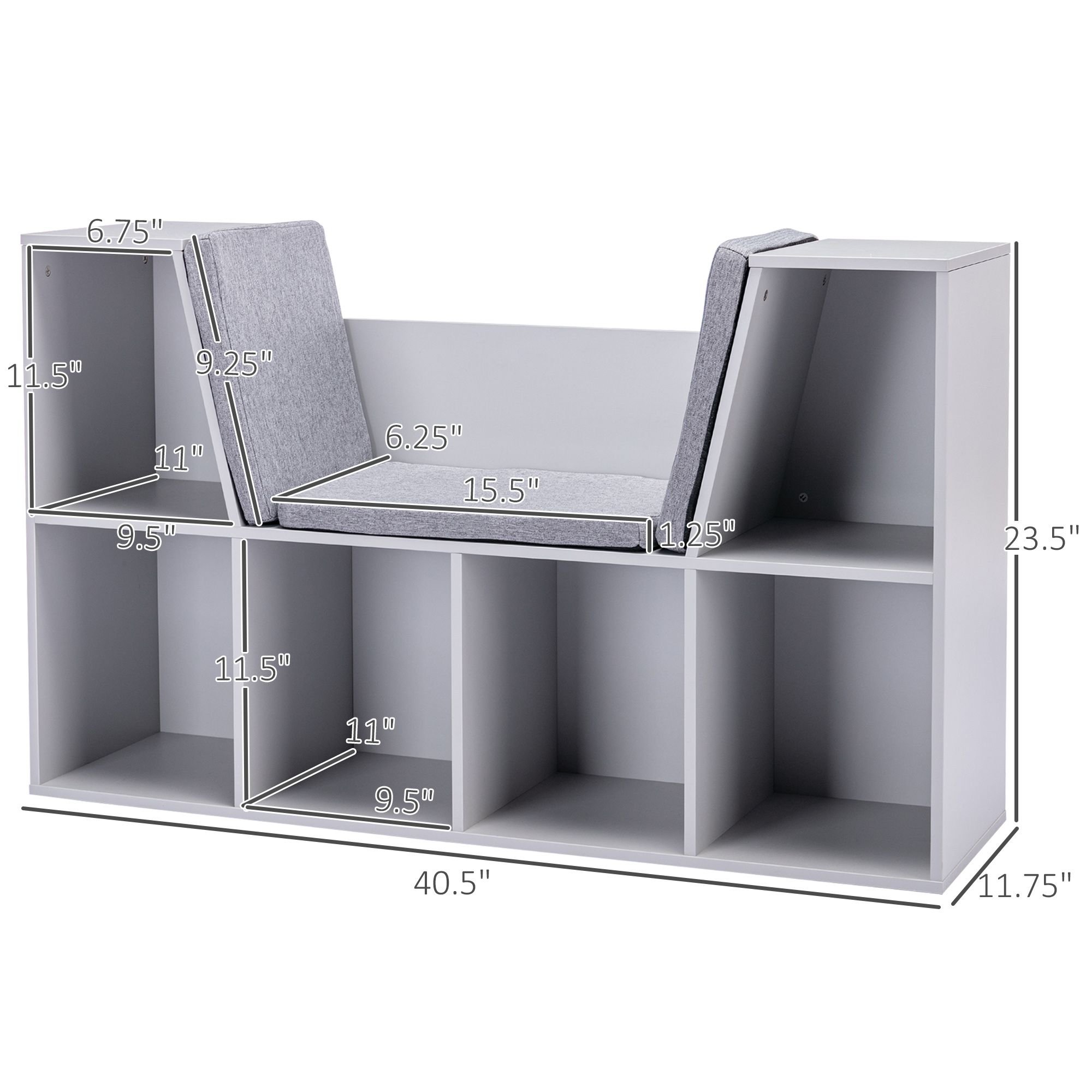 6-Cubby Kids Bookcase with Reading Nook and Cushion, Multi-Purpose Storage Organizer for Bedroom, Living Room, Grey 6-Cubby Kids Bookcase with Reading Nook and Cushion, Multi-Purpose Storage Organizer for Bedroom, Living Room, Grey 6-Cubby Kids Bookcase with Reading Nook and Cushion, Multi-Purpose Storage Organizer for Bedroom, Living Room, Grey
