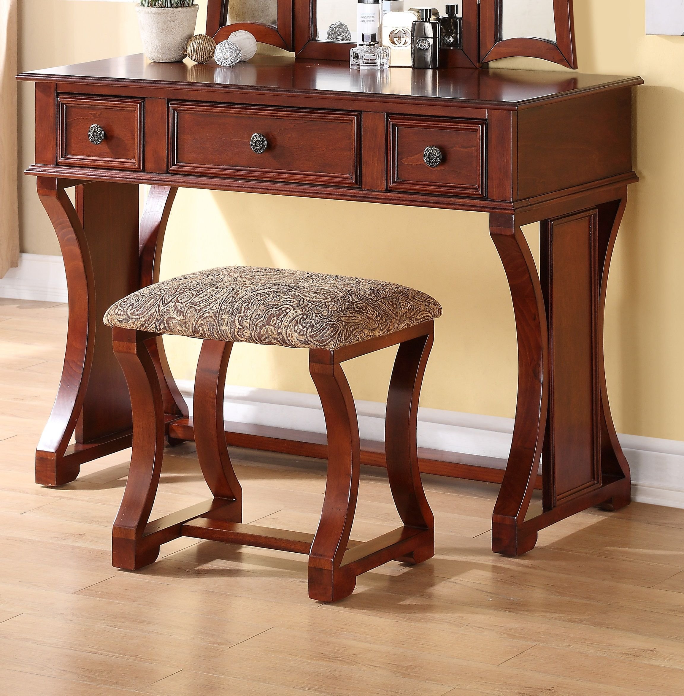 Unique Modern Bedroom Vanity Set w Stool Foldable Mirror Drawers Cherry Color MDF Veneer 1pc Vanity Furniture Unique Modern Bedroom Vanity Set w Stool Foldable Mirror Drawers Cherry Color MDF Veneer 1pc Vanity Furniture Unique Modern Bedroom Vanity Set w Stool Foldable Mirror Drawers Cherry Color MDF Veneer 1pc Vanity Furniture