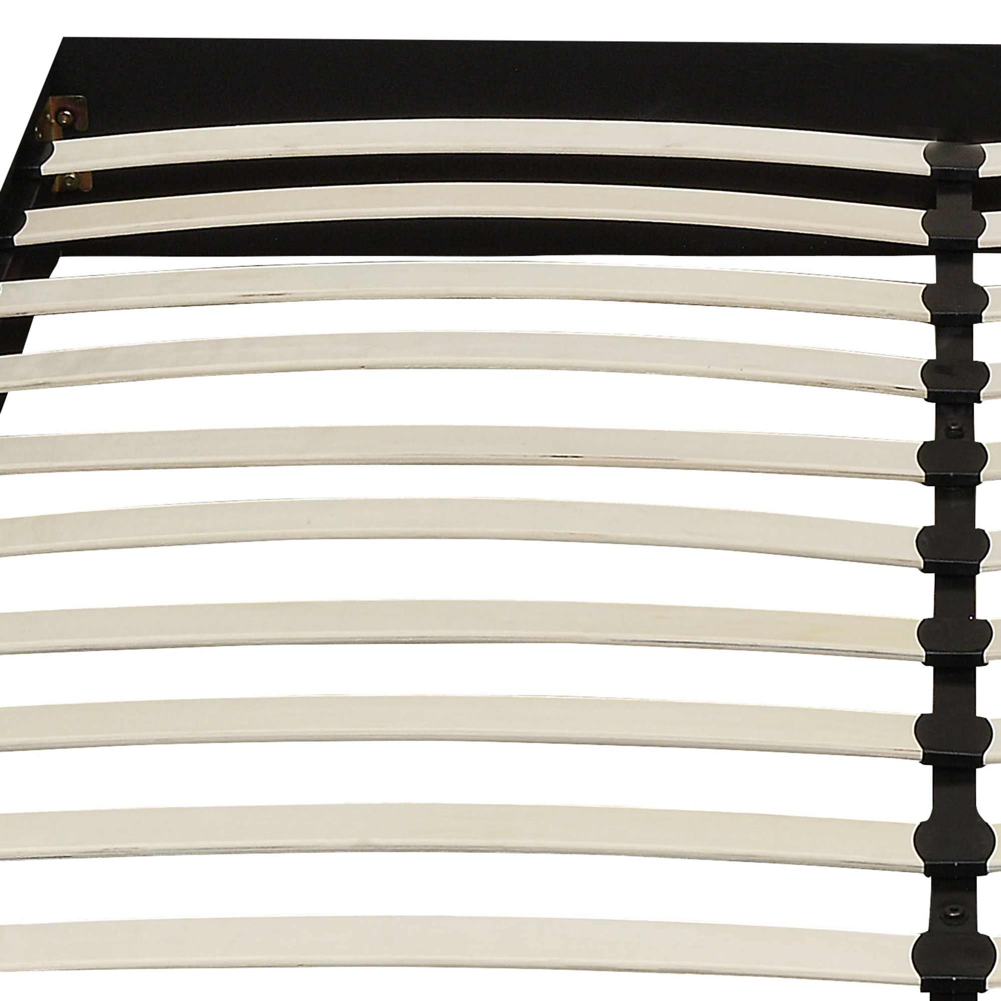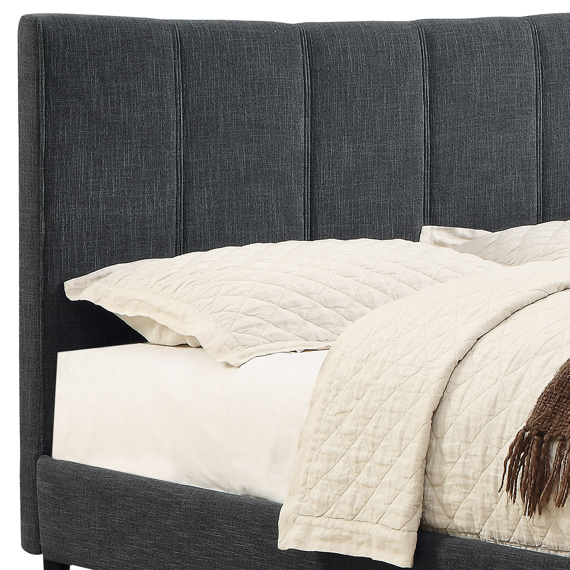 Sleep all of your worries away with this furnishing that acts as the central hub to any home. A mattress might be soft, but this linen-look, textured fabric with vertical panel stitching on its headboard envelops your tranquil retreat in an abundance of plush comfort. The bentwood slat support system with centre rails and support legs allows for the exclusion of a box spring. Brought all together with beautiful solid rubberwood legs in a coffee finish, this bed will accentuate your personal style while adding a pop of fun to your bedroom.