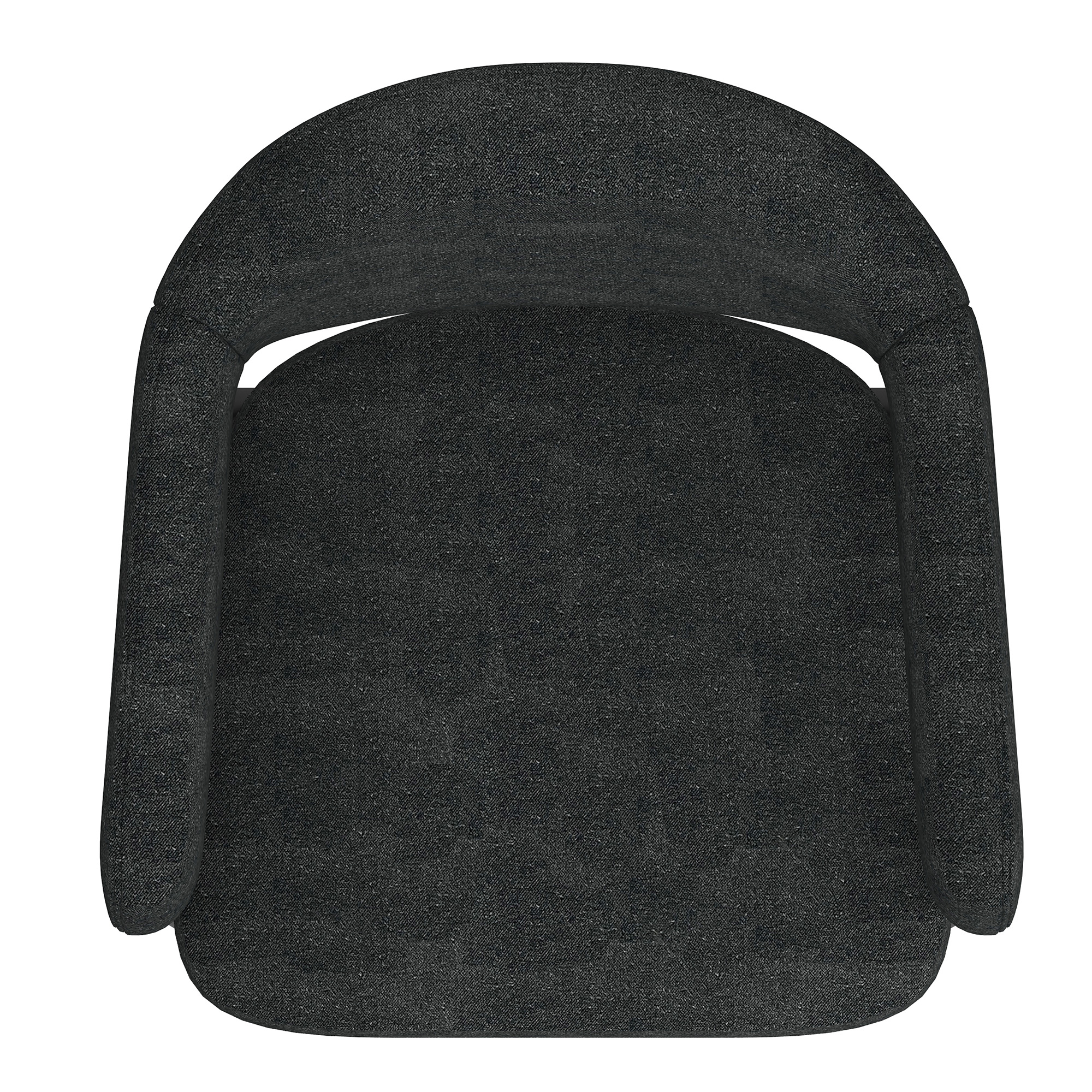 This modern dining chair is eye candy for your dining space. The curved back provide high support and comfort and the thick textured fabric is warm and inviting. Sleek black metal legs ensure this chair will work with any style table in any style room. Also great as an accent piece in a bedroom, living room, or hallway.