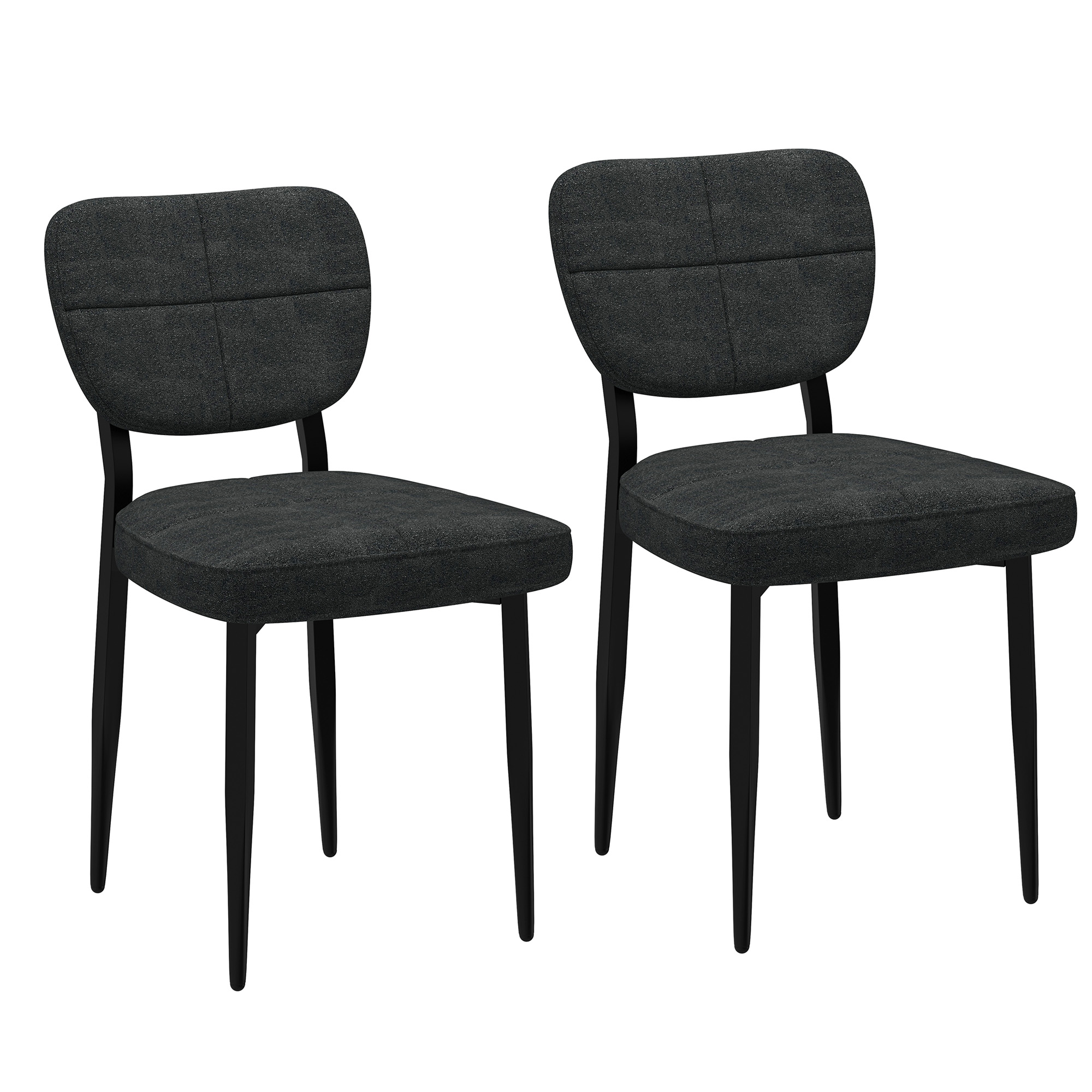 This sturdy pedestal dining table will easily become the centrepiece of your dining space. The curves of the base provide mid-century appeal while the faux marble top gives a modern touch. Comfortably fit up to 6 chairs, great for formal or casual dining. For the design savvy folks who want elevated style options along with their everyday comfort, this dining chair is the perfect choice. The thick, textured fabric has a modern stitched pattern, and sits atop a black metal frame that provides a clean look along with sturdy support.