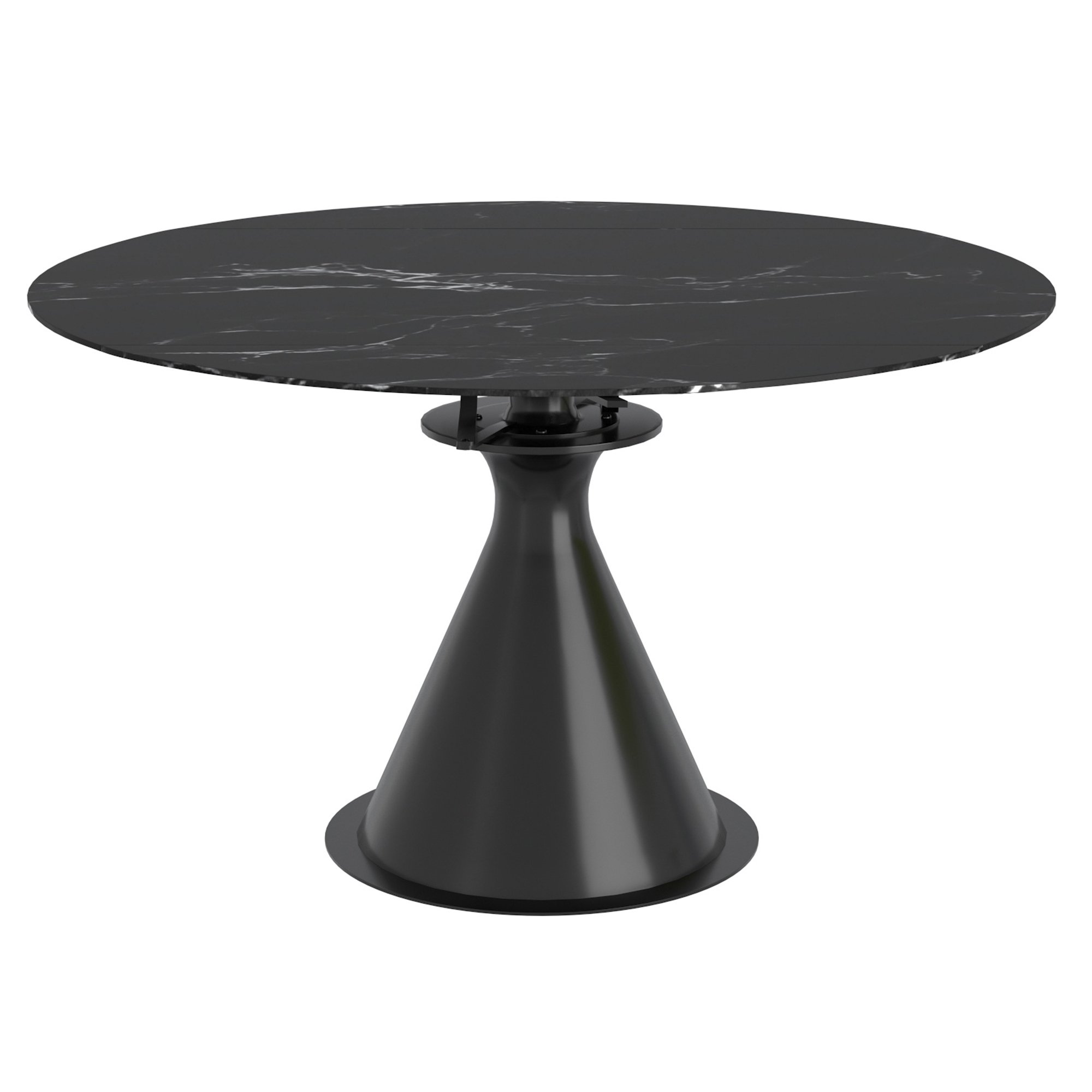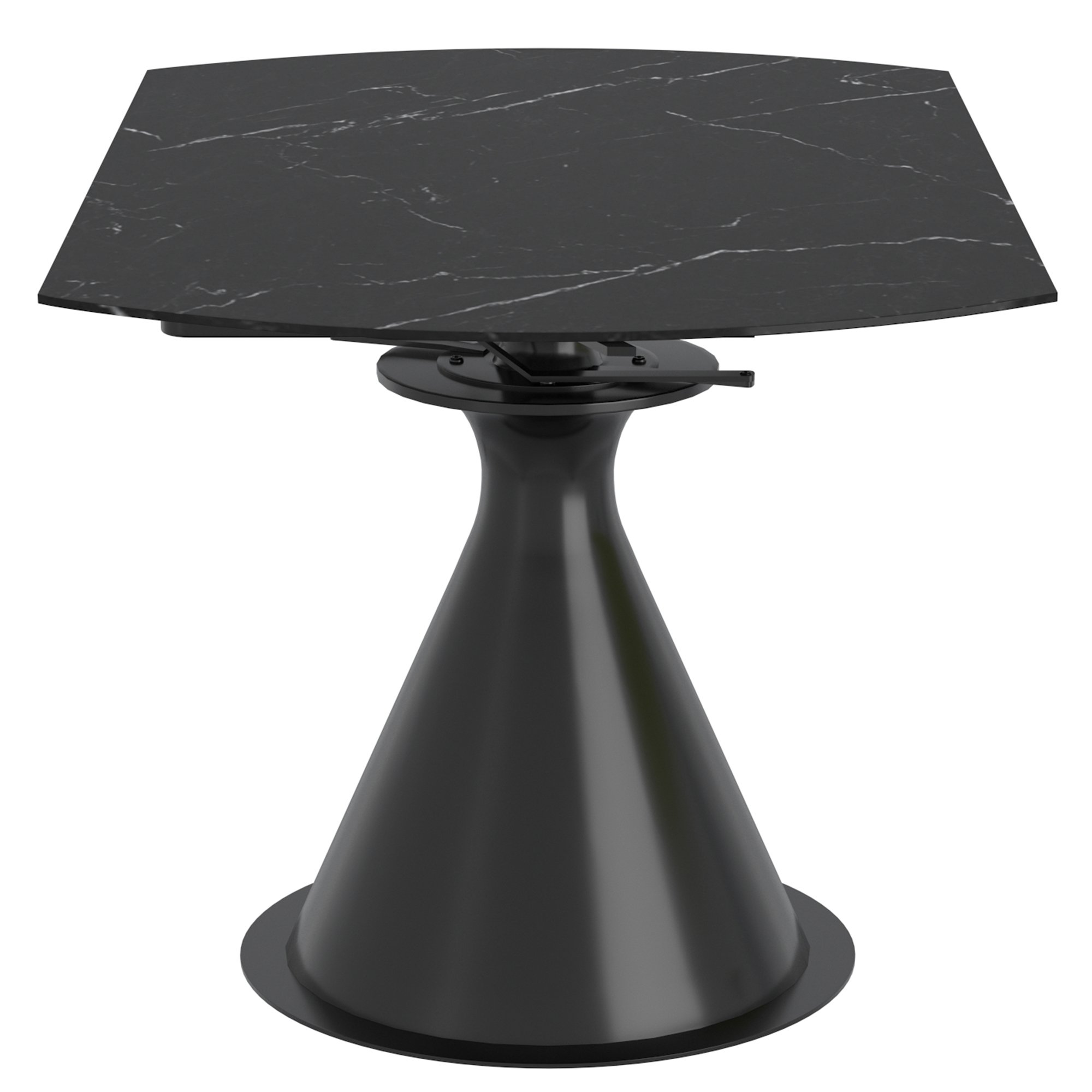 Practicality and style come together with a few turns. This table goes from a spacious stadium-shaped table, to an large-diameter round table in a matter of seconds - just a few one-handed turns of the table top. The sintered stone table is the best option for durability and design. Heat resistant, stain resistant, scratch resistant and, with the marble effect finishing, still pretty to look at! The sturdy cone-shaped pedestal base is the perfect finishing touch on this gorgeous new centrepiece to you dining room or kitchen. The textured chenille fabric of this dining chair will simply make you swoon…soft and comfortable, easy to wipe clean, and simply beautiful! Welded metal base provides sturdy support and the return swivel on the base will add a fun and unexpected element to your seated experience. The angled back, curved seat and arms add a formal touch to your space, but these chairs are just as well suited for casual dining spaces.