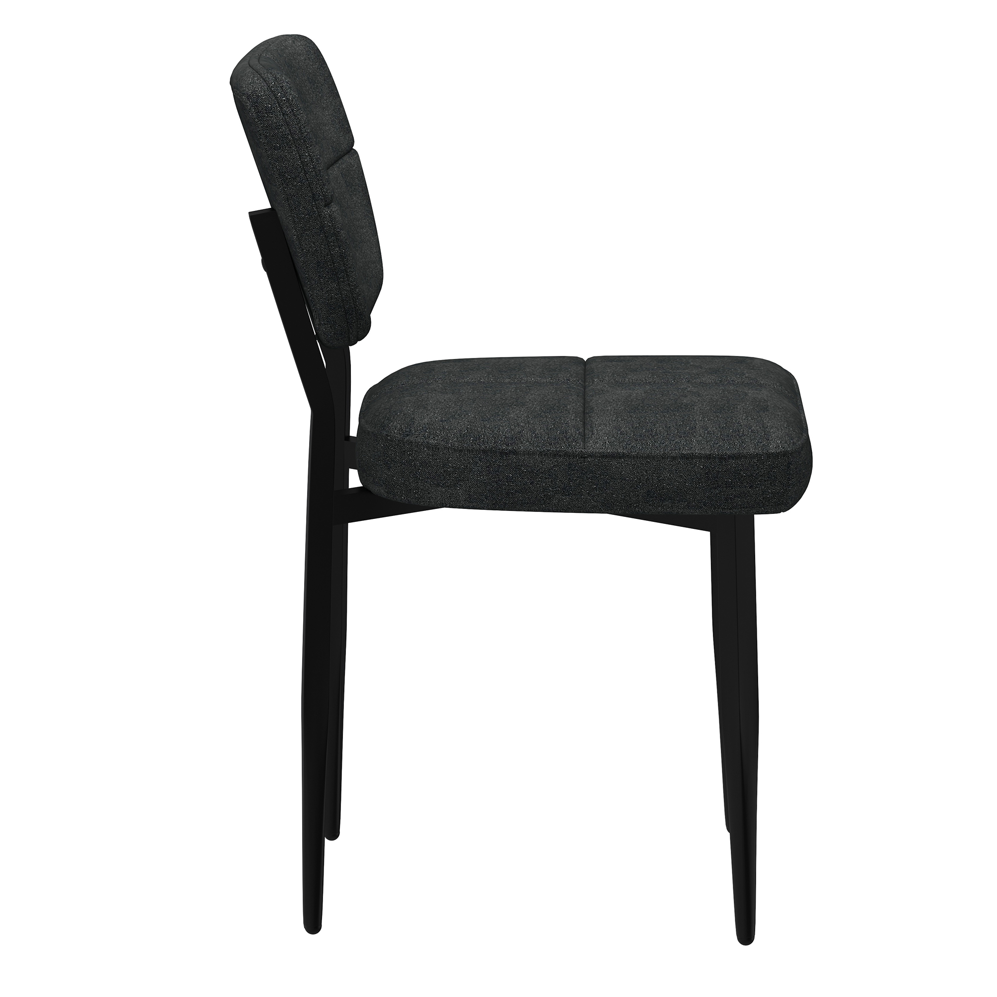 Simple style can have an elevated design feel - this table is the perfect example. The wood grain detail on the table top adds an element of warmth, while rounded edges provide a high end, finished look and feel. The clean-lined black metal legs create an ideal surround for whatever chairs you pair with it. Great for small spaces, casual dining. For the design savvy folks who want elevated style options along with their everyday comfort, this dining chair is the perfect choice. The thick, textured fabric has a modern stitched pattern, and sits atop a black metal frame that provides a clean look along with sturdy support.
