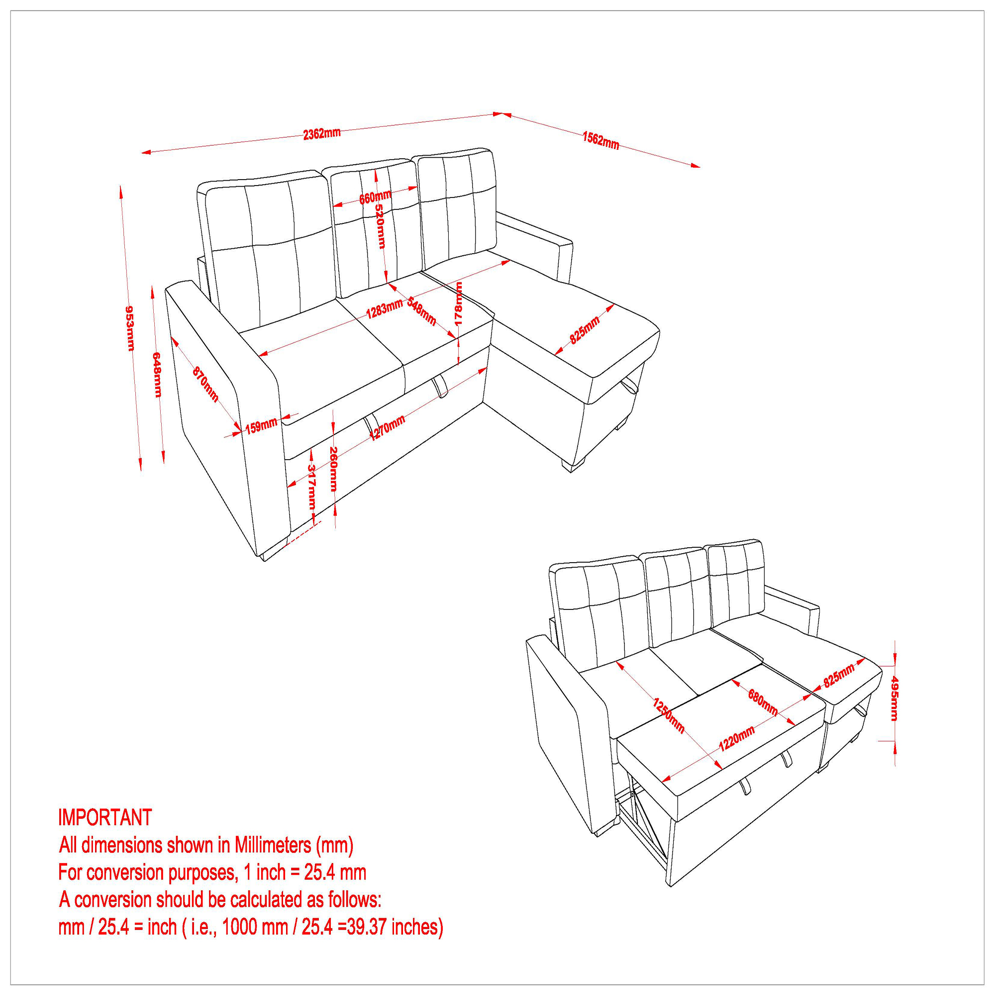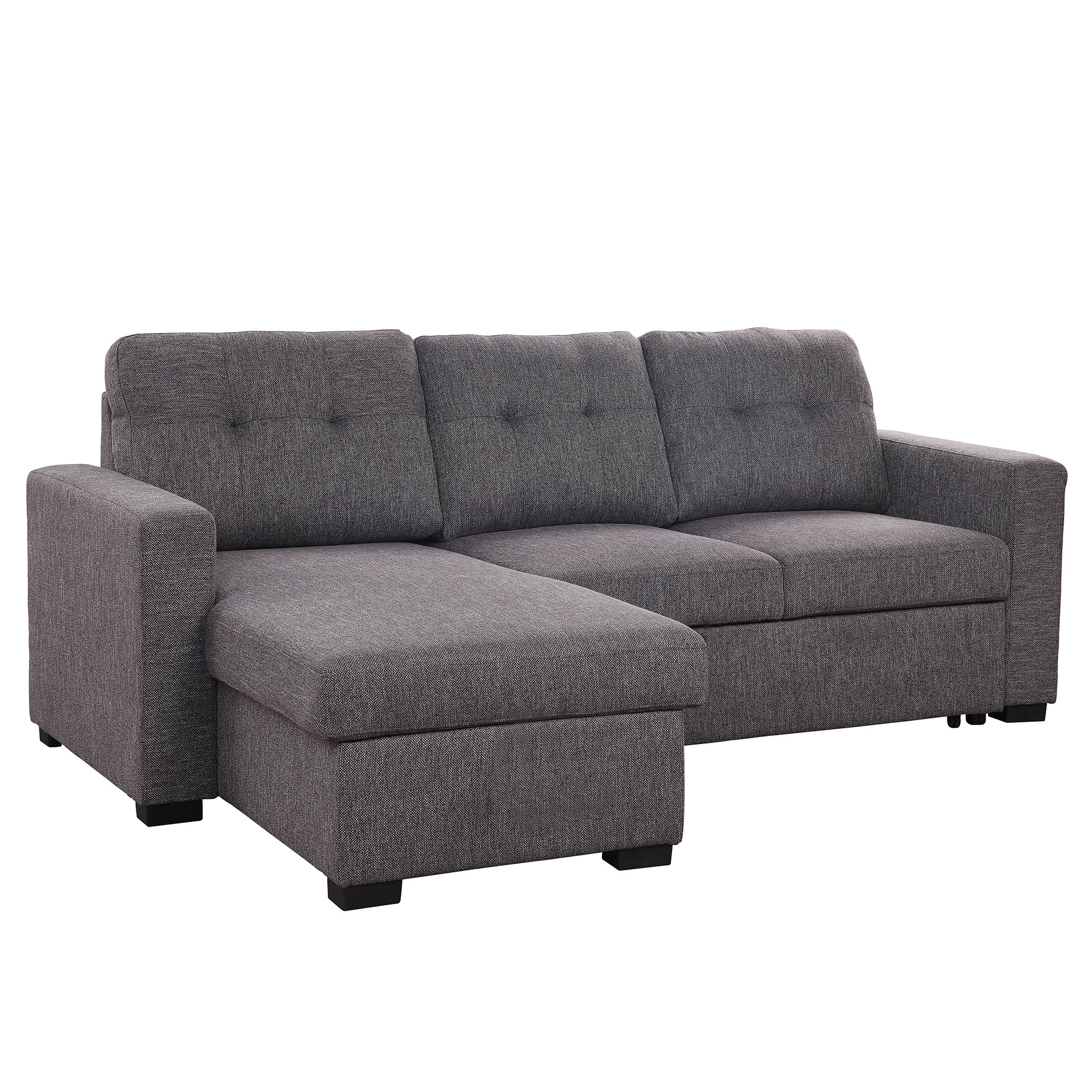 Always be ready for those overnight guests with this convertible sofa. With full-size seating and a chaise on one end, you don't sacrifice your everyday comfort. And when it's time for sleep the bottom pulls up and out on an easy-to-use hydraulic mechanism, converting to a large and comfortable sleeping surface. Storage under the chaise is the perfect place to keep extra bedding so everything is ready where and when you need it. Practical and pretty - what more can you ask for?