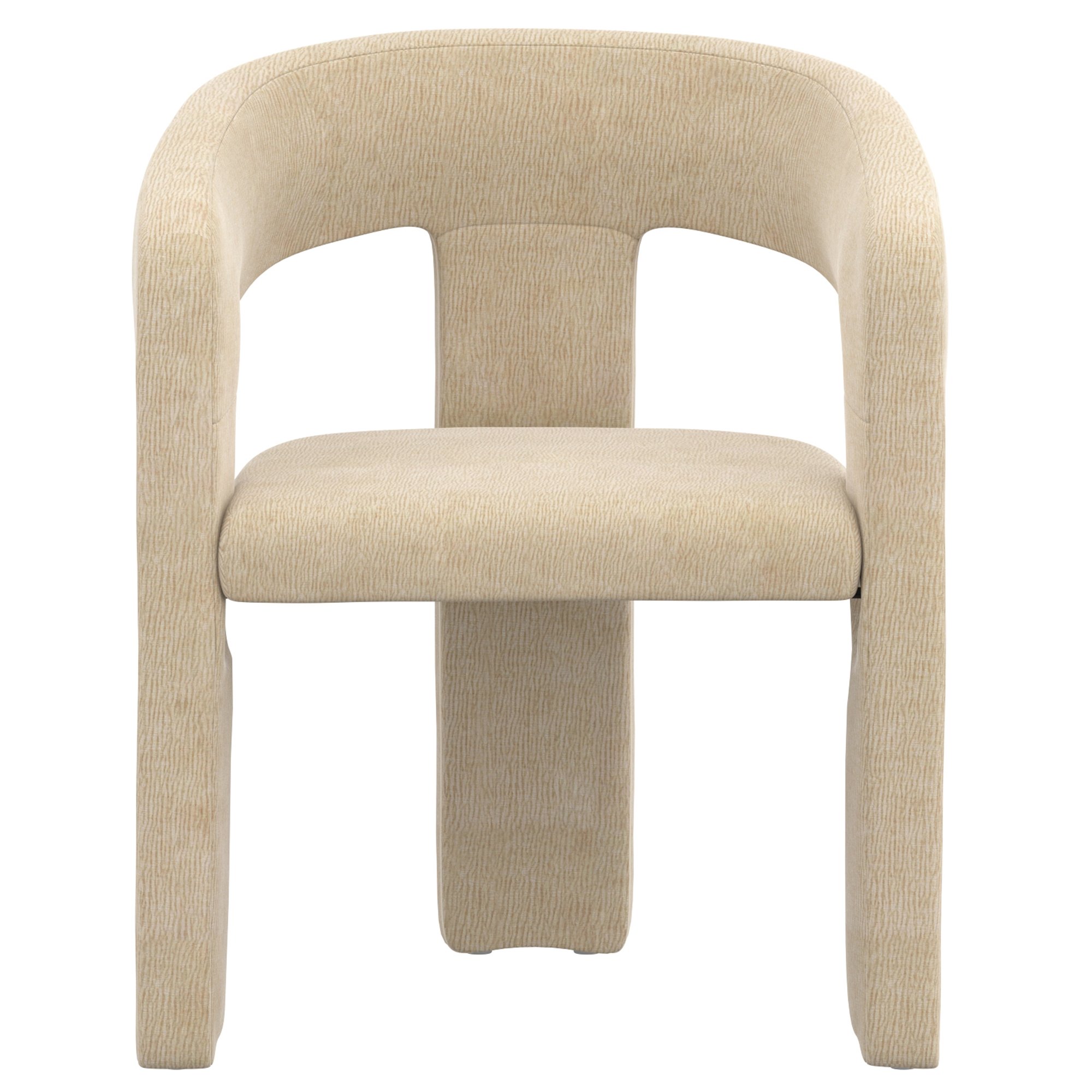 Elevate your dining experience with this round pedestal base dining table, a hallmark of high-end designer inspiration. Featuring a beautifully reeded wood base, this table exudes timeless charm, offering a refined focal point for any dining space. The bevelled table top and the visible wood grain throughout add natural beauty and organic texture. This gorgeous, fully-upholstered dining chair will instantly create a high-end look in your dining space. The curved seat and comfortable cushion will allow for hours of seated comfort and the luxurious chenille fabric will create an incomparable depth of designer-chic.