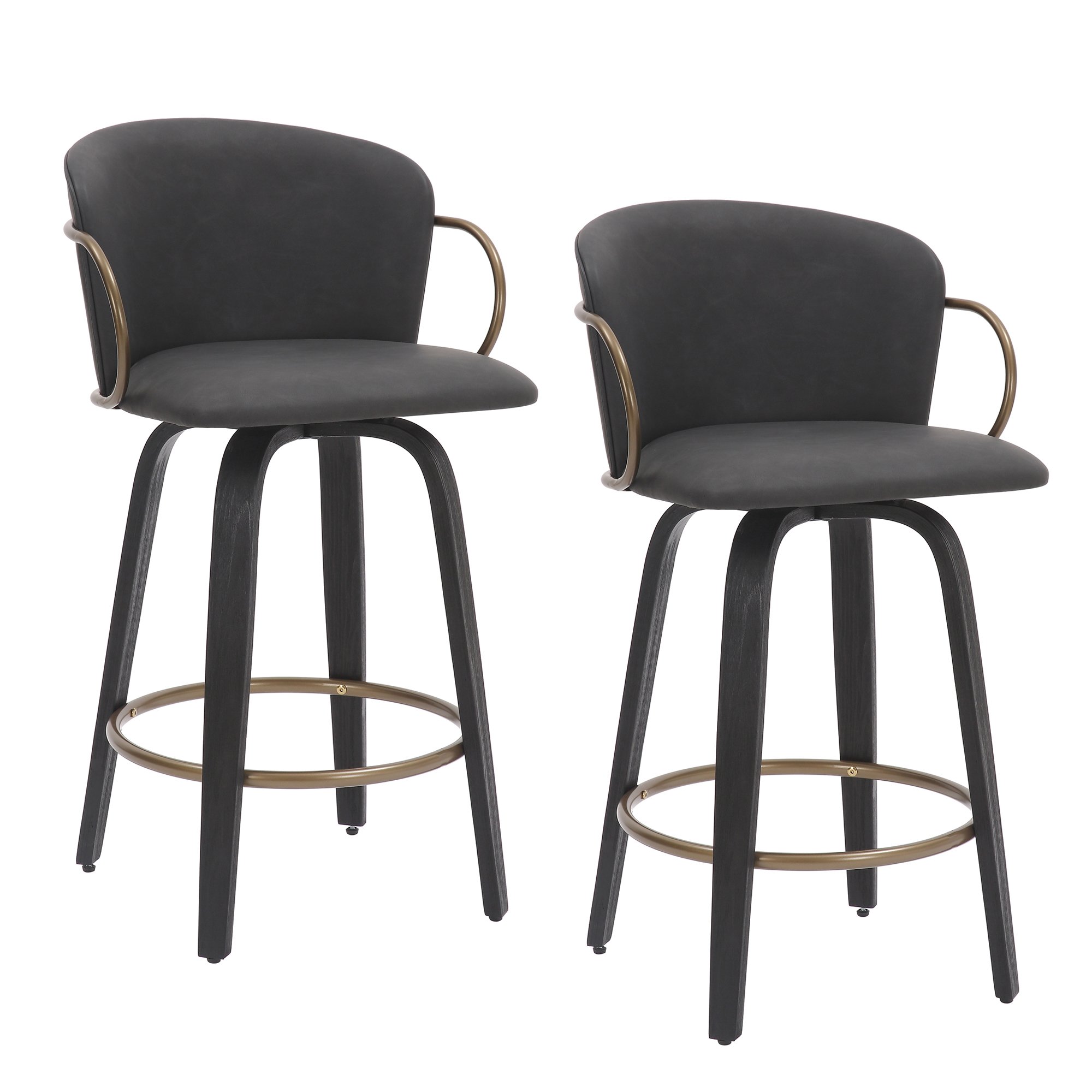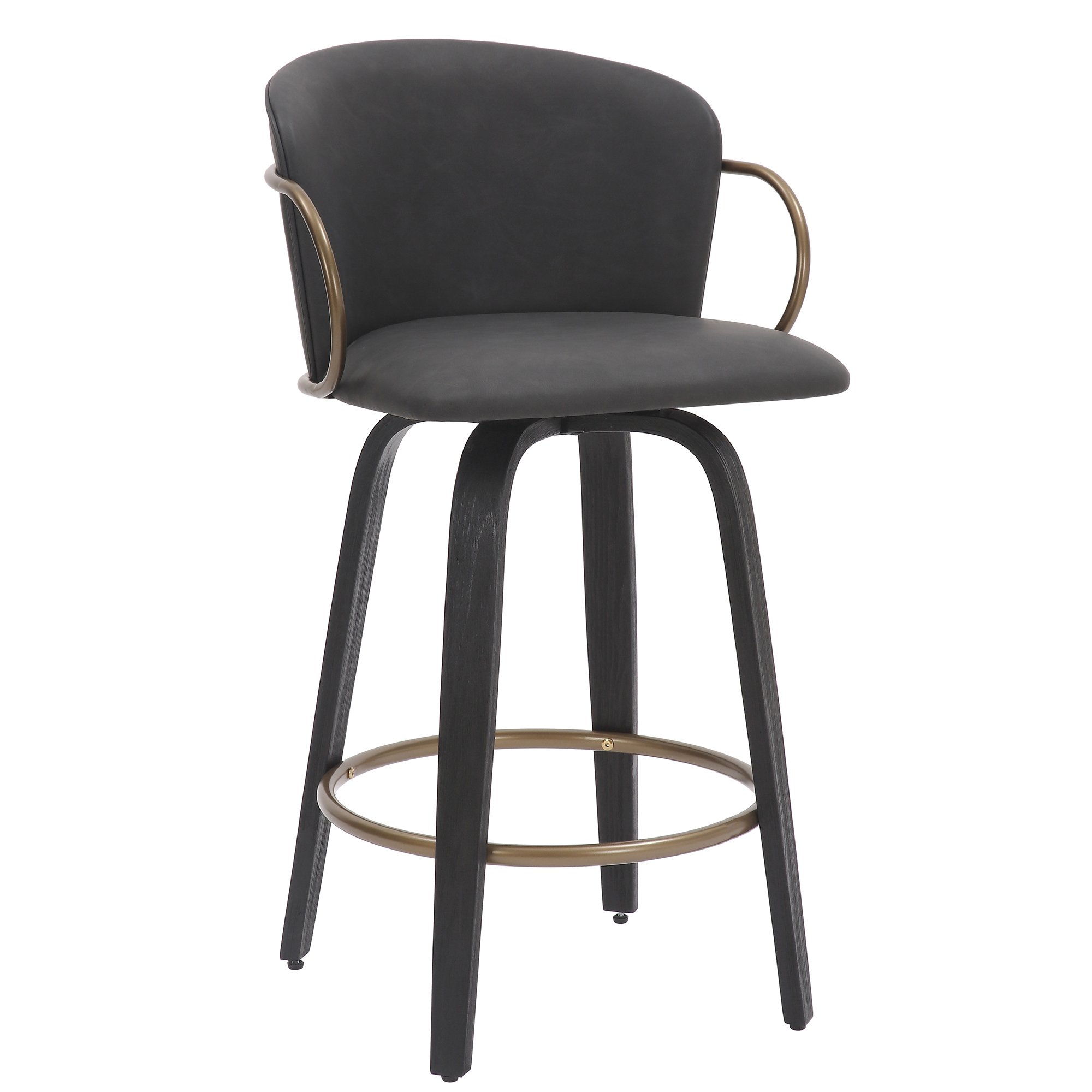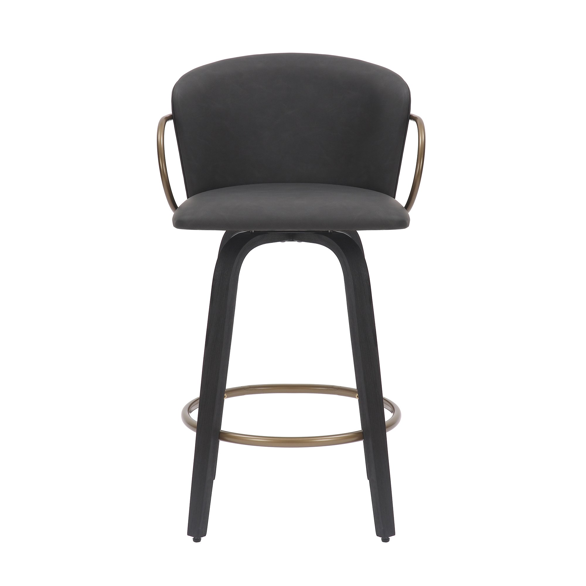 When high fashion meets furniture you get items like this stool, dripping in style. The bucket-style seat will envelope you in comfort while the aged gold frame and arms provide the perfect finishing touch. The vintage faux leather sitting atop the wood grain base will be sure to leave a lasting impression.